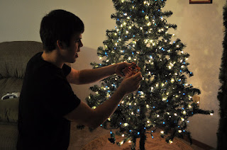 | Getting his ornament for the year, a buzz lightyear action figure |